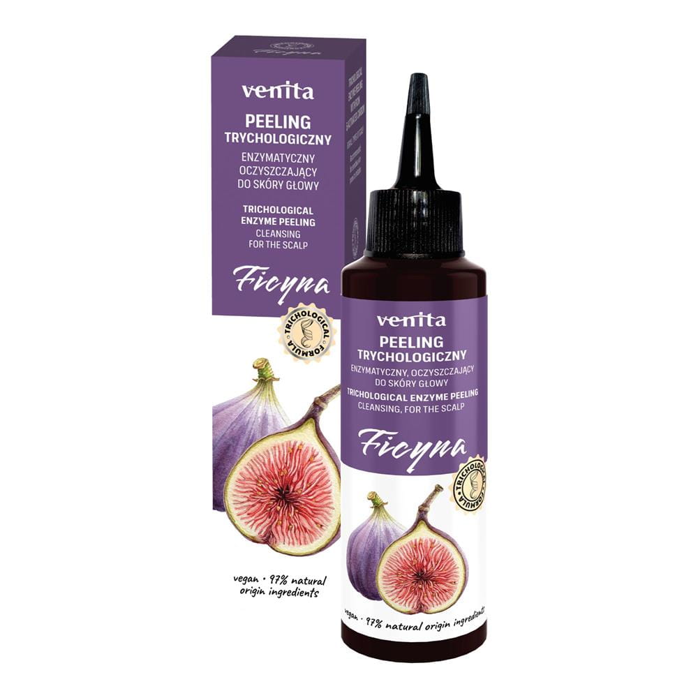 Peeling ma za zadanie złuszczyć i usunąć zrogowaciały naskórek głowy i oczyścić skórę oraz włosy z toksyn, nadmiaru sebum oraz innych zanieczyszczeń. Peeling trychologiczny Venita to peeling enzymatyczny co oznacza, że w odróżnieniu od peelingów mechanicznych pozbawiony jest drobin ścierających. Dzięki temu nie podrażnia skóry głowy, ani nie powoduje wypadania włosów i może być stosowany do skóry wrażliwiej oraz skłonnej do podrażnień. Peeling nie tylko oczyszcza ale również zmniejsza tendencję do przetłuszczania się włosów, pozwala na lepsze przenikanie składników pielęgnacyjnych zawartych w stosowanych na co dzień kosmetykach pielęgnacyjnych, poprawia kondycję skóry i włosów. Po użyciu peelingu polecamy pielęgnację szamponami i wcierkami trychologicznymi serii Venita.
